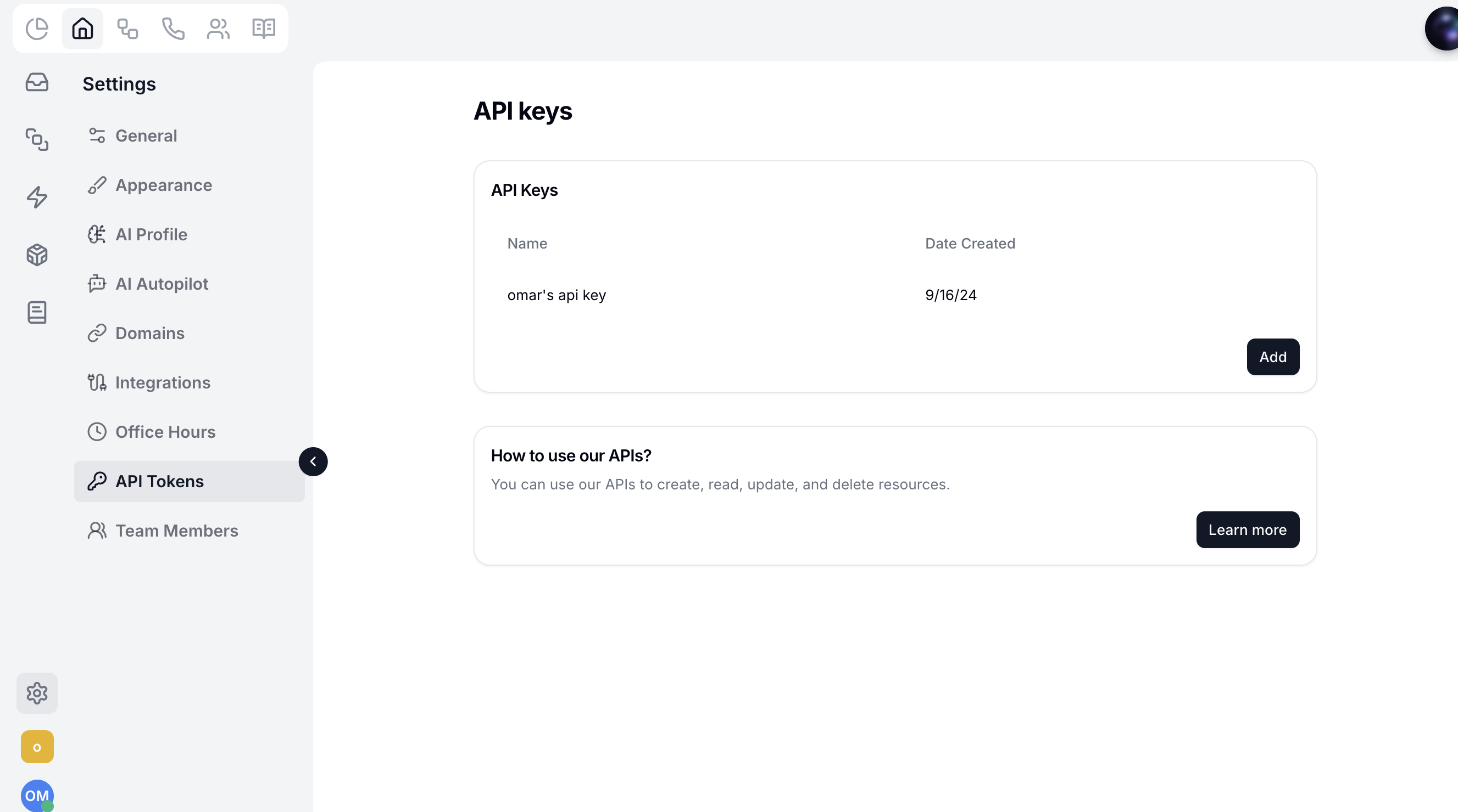 Then choose “API Token” from the left menu