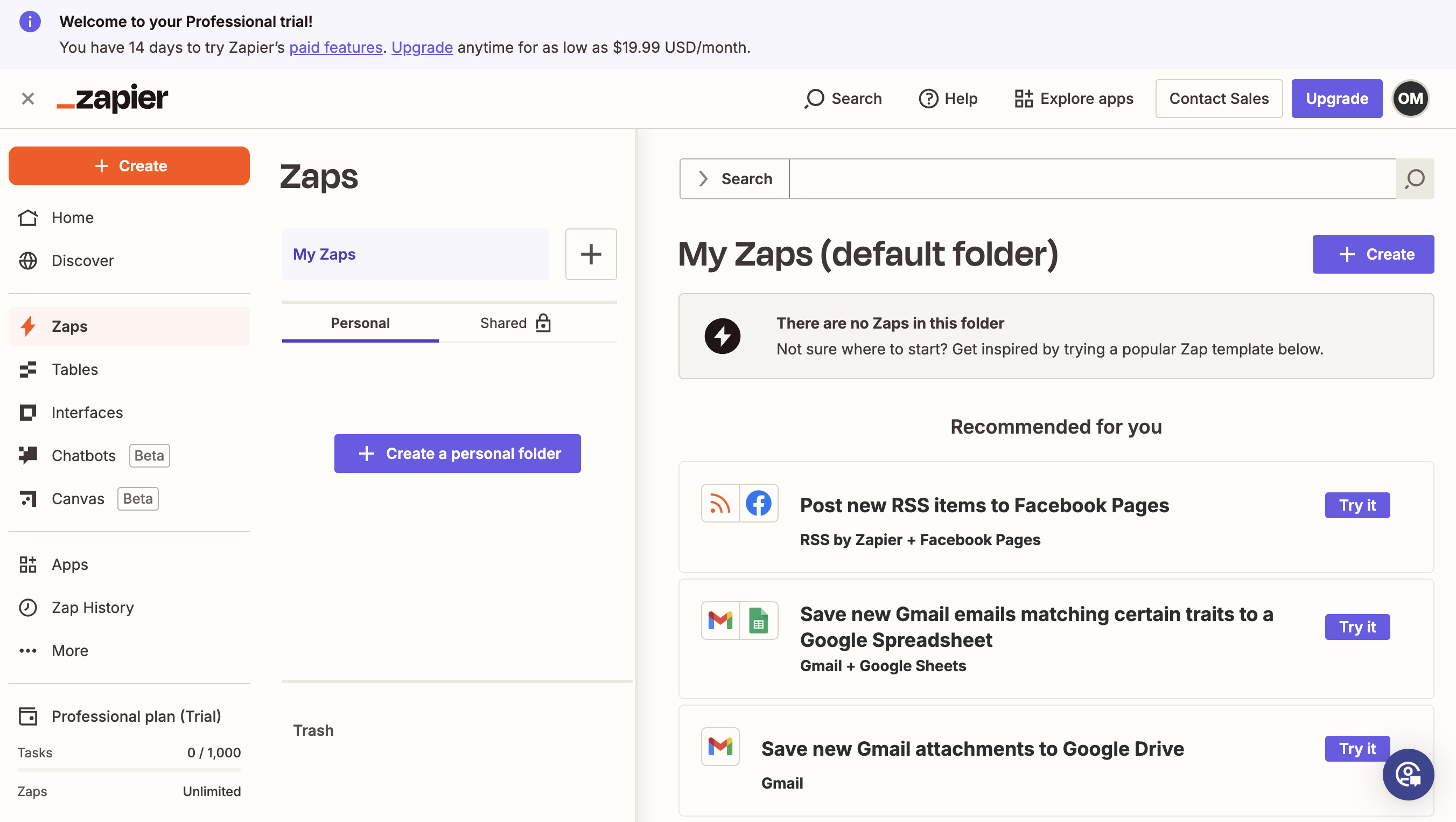Create a new Zap